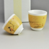 [团购]羊脂玉瓷手绘对杯:喜上眉梢/临江赏秋