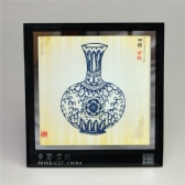 [团购]蔚县单色剪纸小镜框台屏:青花瓷瓶