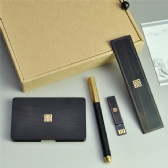 [团购]紫光檀嵌黄铜三件套:如意笔+如意签+笔记本