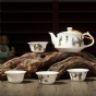 该款拎包以优质头层牛皮、5A级真丝为主要材质,以覆合、拼接、衍缝等工艺精制而成。藏青蓝色泽深邃高贵,触感细腻爽滑。主题纹样来源于国家一级文物“五星出东方利中国”,对称式结构端庄大气,同时结合浙江工艺美术大师廖春妹的手工刺绣,更加彰显了该款拎包融远古经典于现代时尚的非凡之美。